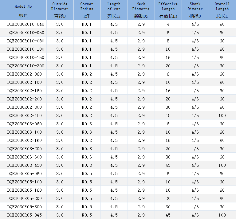 二刃深溝圓鼻銑刀-石墨圓鼻銑刀